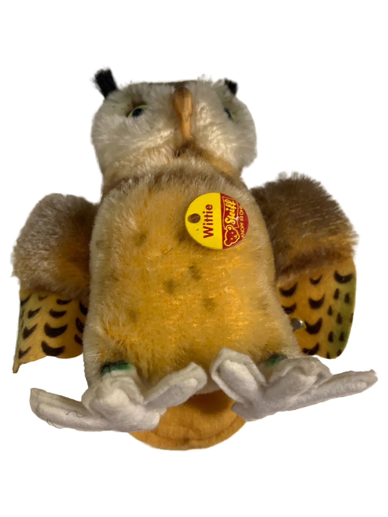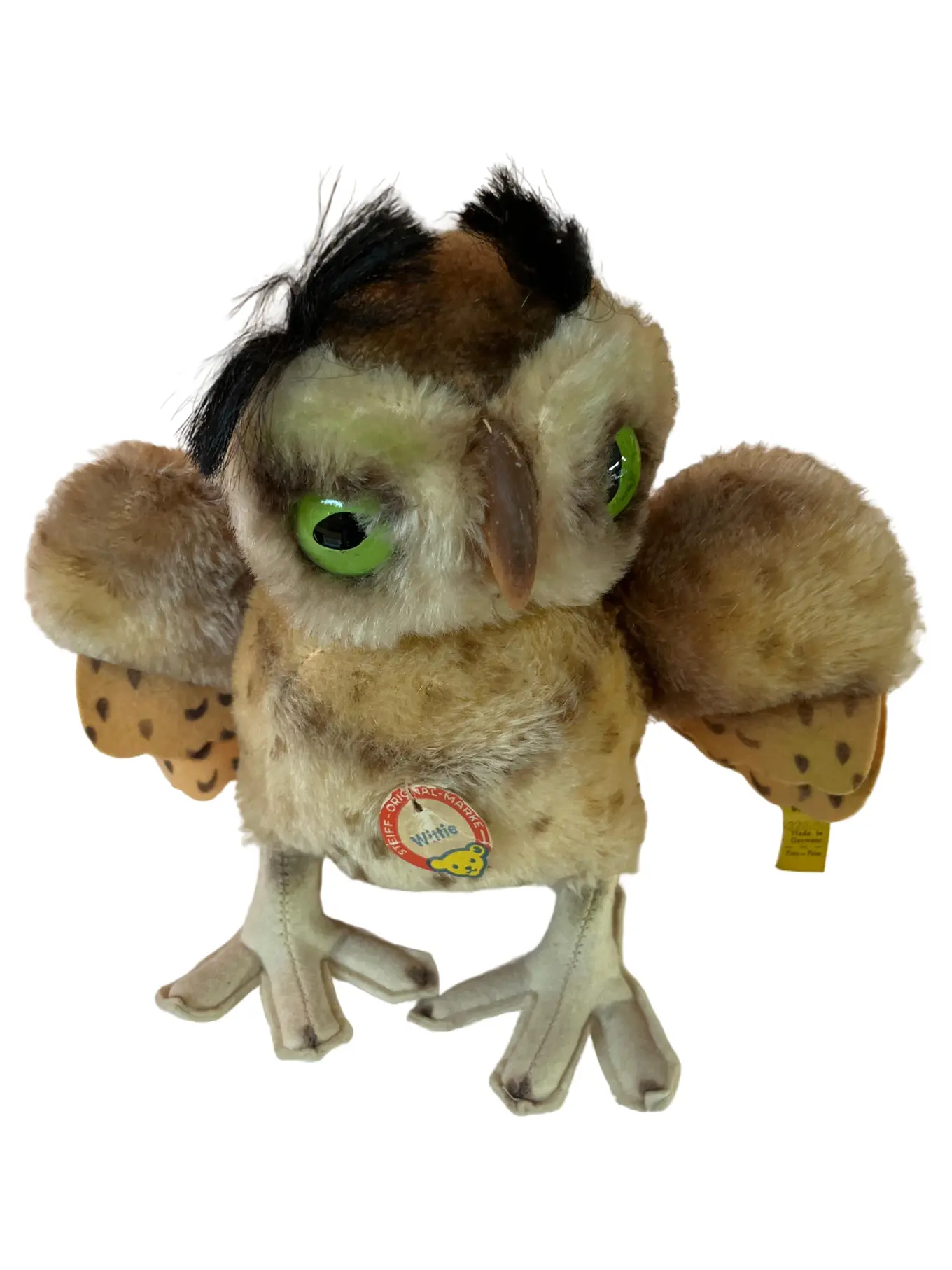 STEIFF Wittie Eule Plüschtier Vintage Kuscheltier Braun mit Knopf im Ohr