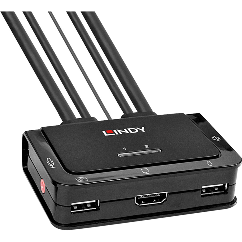 Lindy 2 Port Kabel KVM Switch, HDMI 4K60, USB 2.0 & Audio KVM-Switch, schwarz