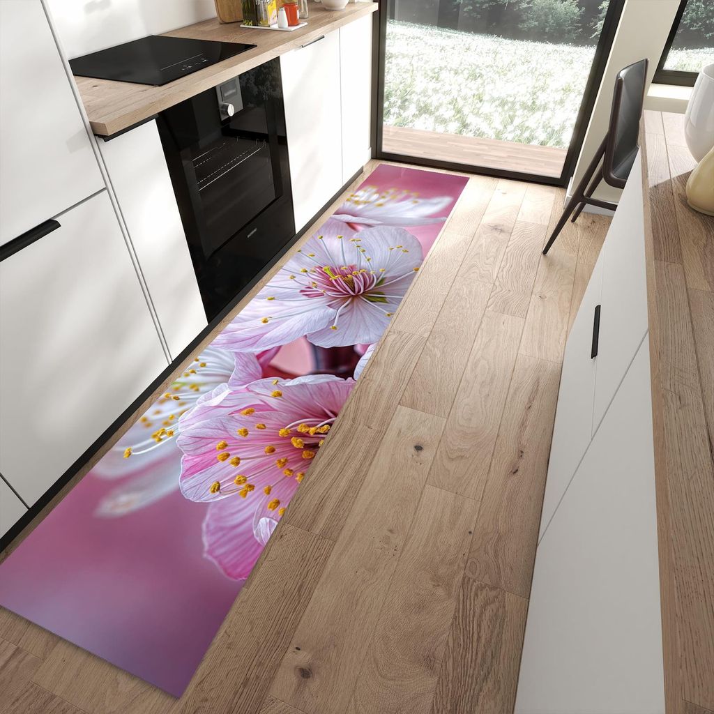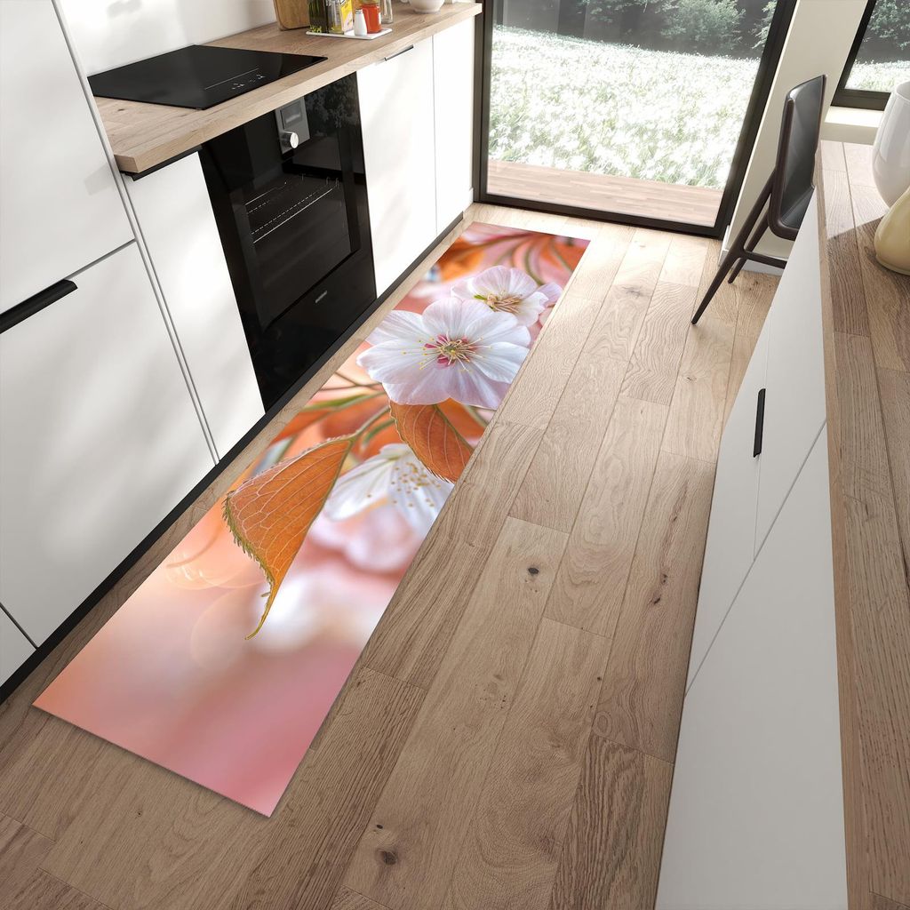 Küchenteppich 60x300cm rutschfest & abwischbar PVC Läufer - Sanfte Kirschblüten