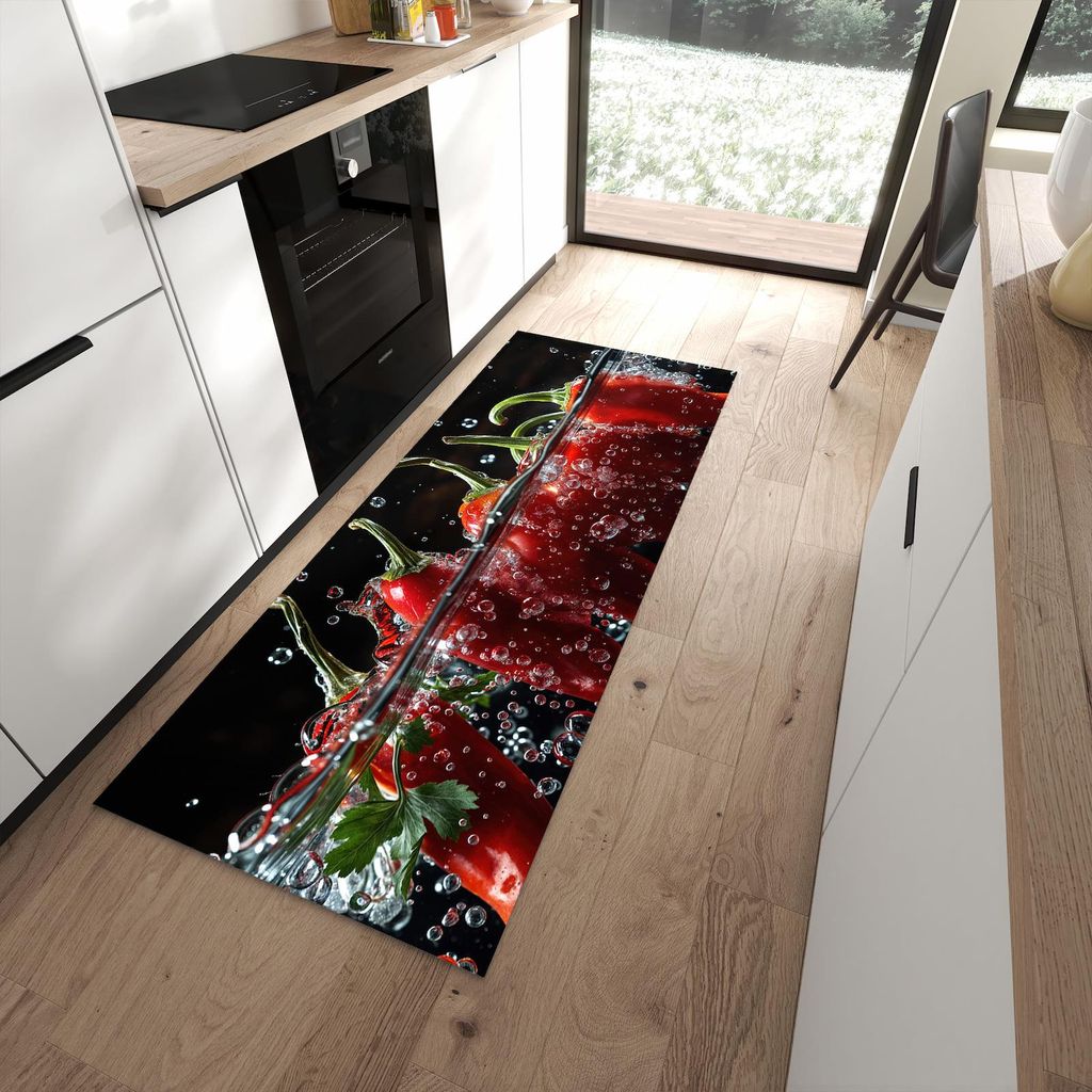 Küchenteppich 80x200cm rutschfest & abwischbar PVC Läufer - Paprika im Wasser