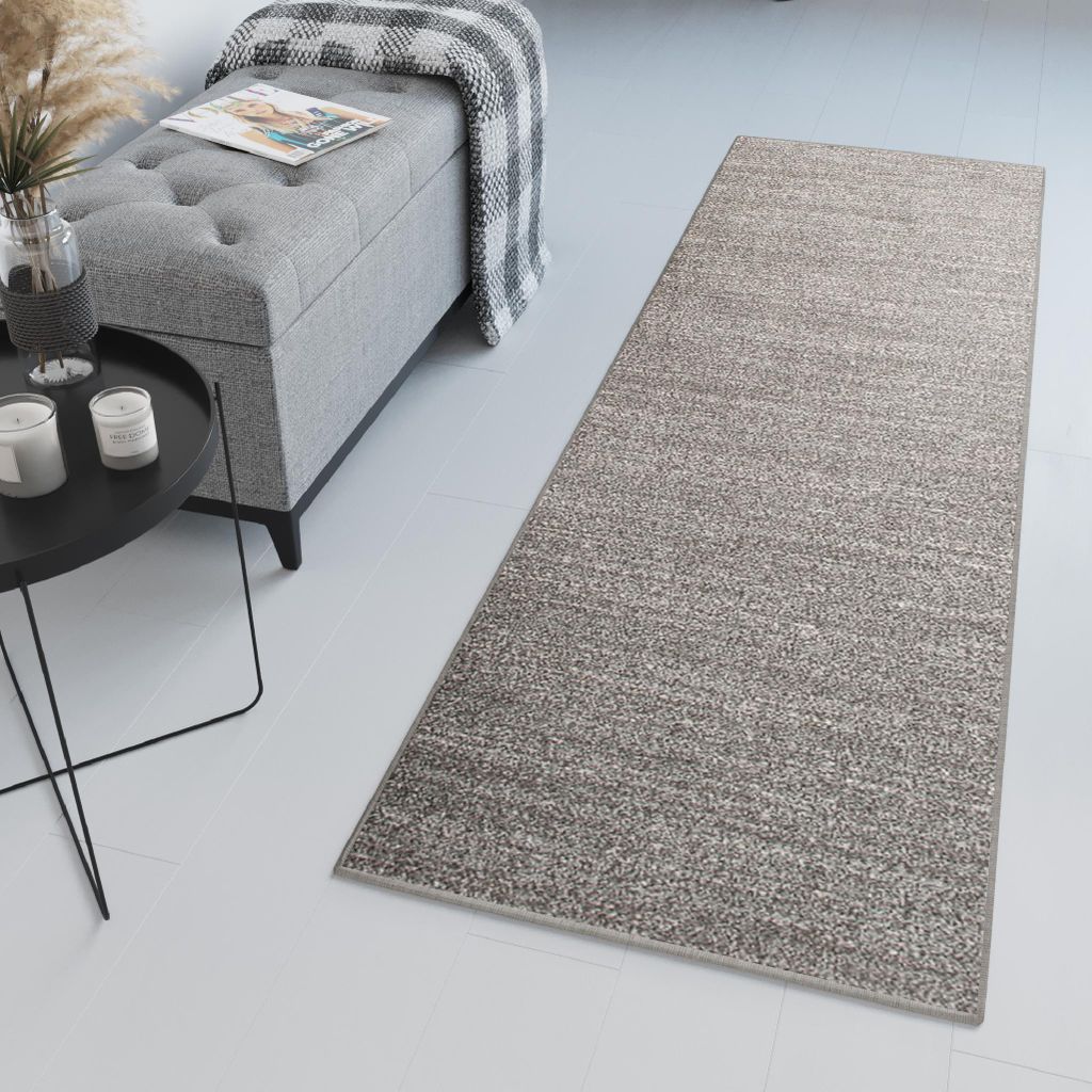 Läufer Teppich Meterware Flur Brücke Wohnzimmer Schlafzimmer Kurzflor Modern Design Meliert Grau 100 x 720