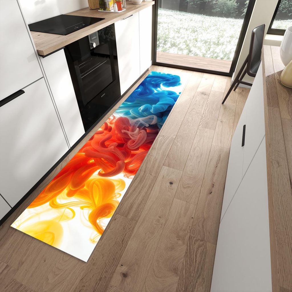 Küchenteppich 60x270cm rutschfest & abwischbar PVC Läufer - Farbige_ Wirbel