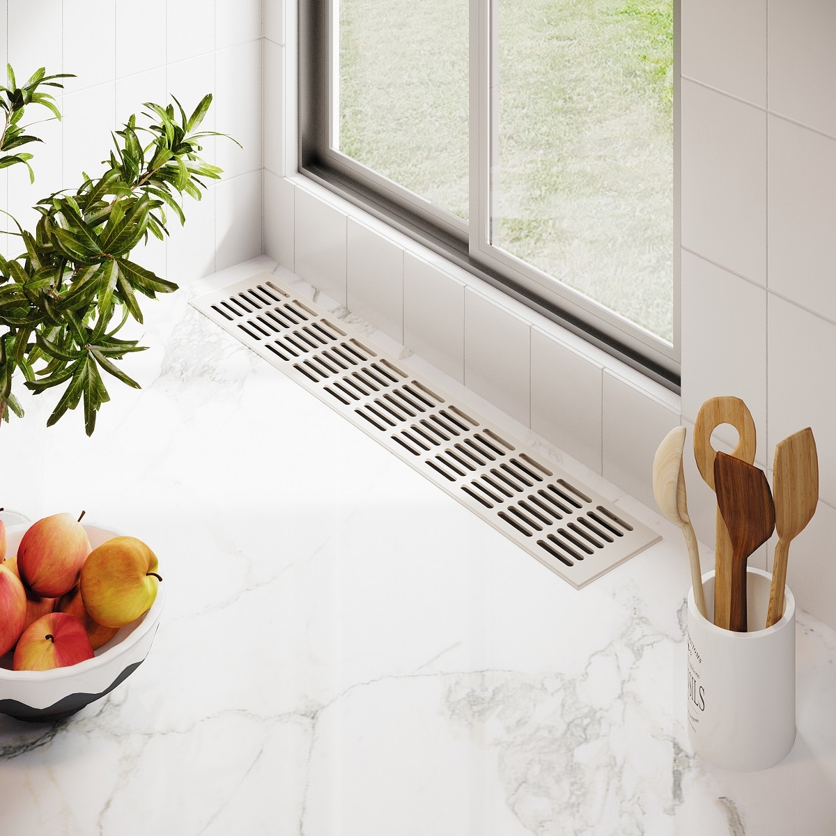 Aluminium Lüftungsgitter 150mm x 1200mm Stegblech Lüftung Heizungsdeckel Weiß RAL 9010