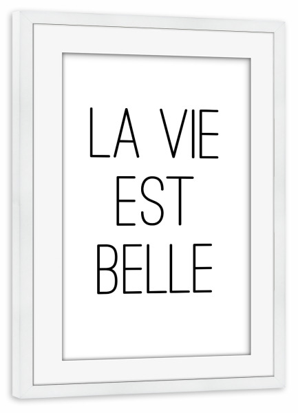 Poster mit Rahmen weiß "La Vie Est Belle - Spuch" artboxONE - Typografie,Schwarzweiß
