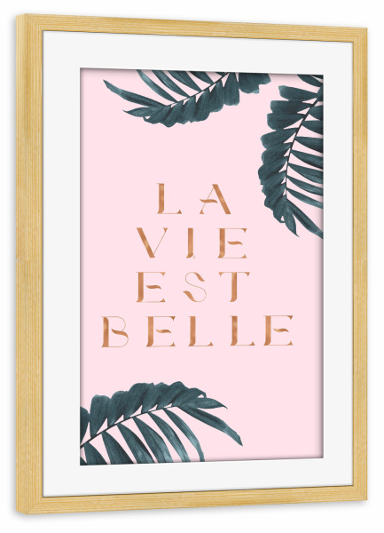 Poster mit Rahmen kiefer "La Vie est Belle Rose Gold Edition" artboxONE - Natur,Abstrakt - Quote,French,France,Palm