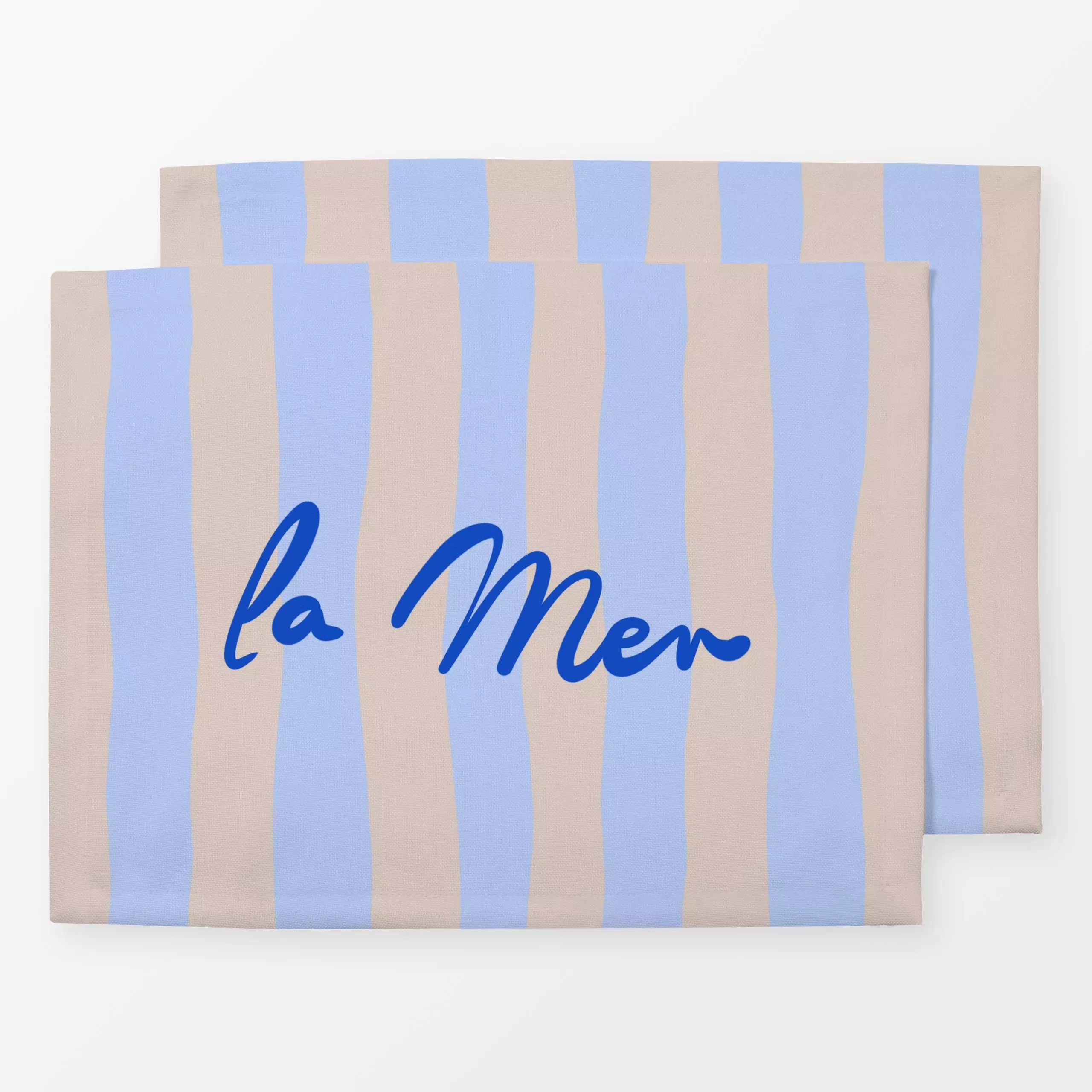 Tischset La Mer Streifen - Natur & Landschaft, Sprüche & Schriftzüge - von „Studio Kesse"; Streifen, Meer, Strand, Urlaub, t...