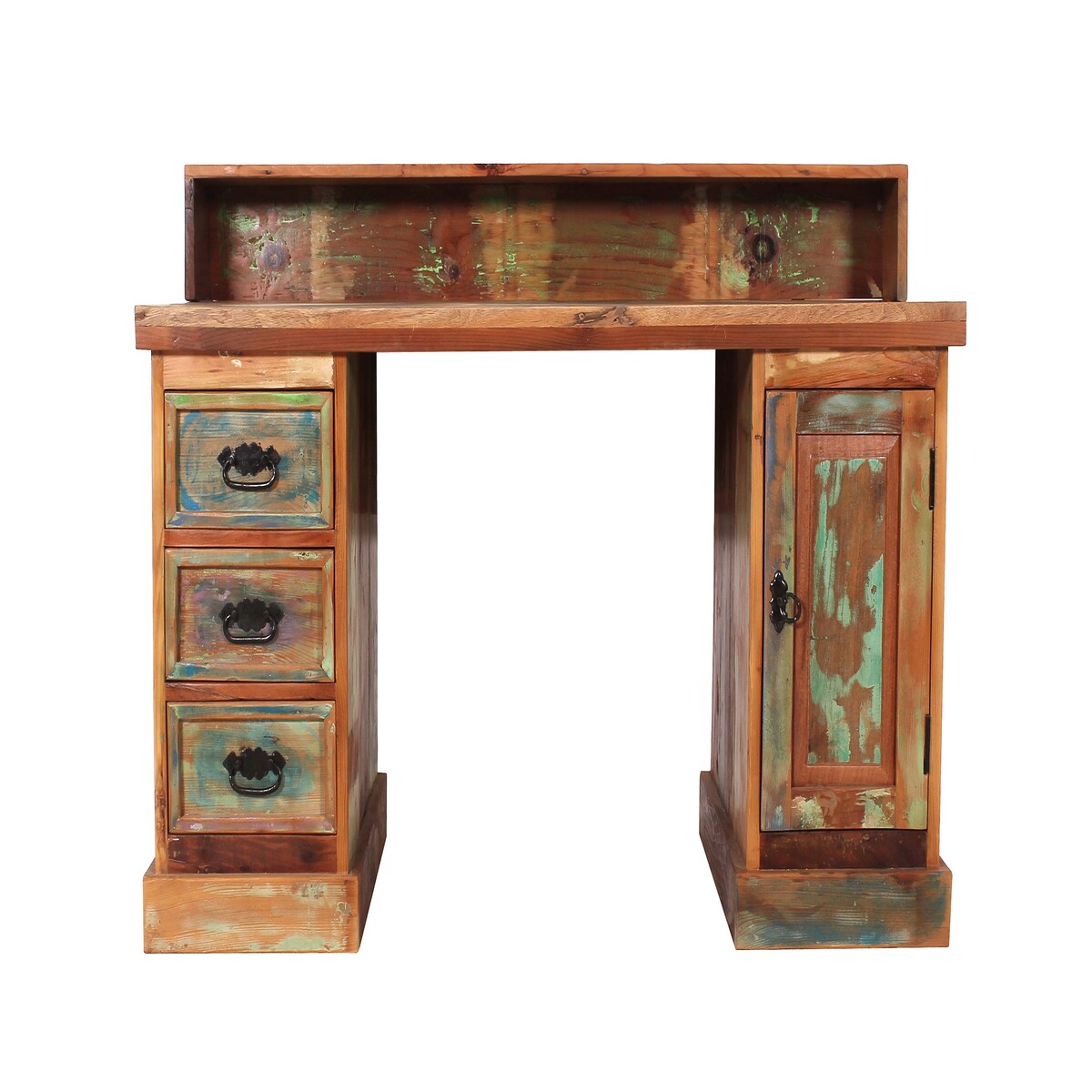 SIT Möbel Schreibtisch | 3 Schubladen, 1 Tür | Altholz lackiert bunt | B 132 x T 65 x H 90 cm | 09110-98 | Serie RIVERBOAT