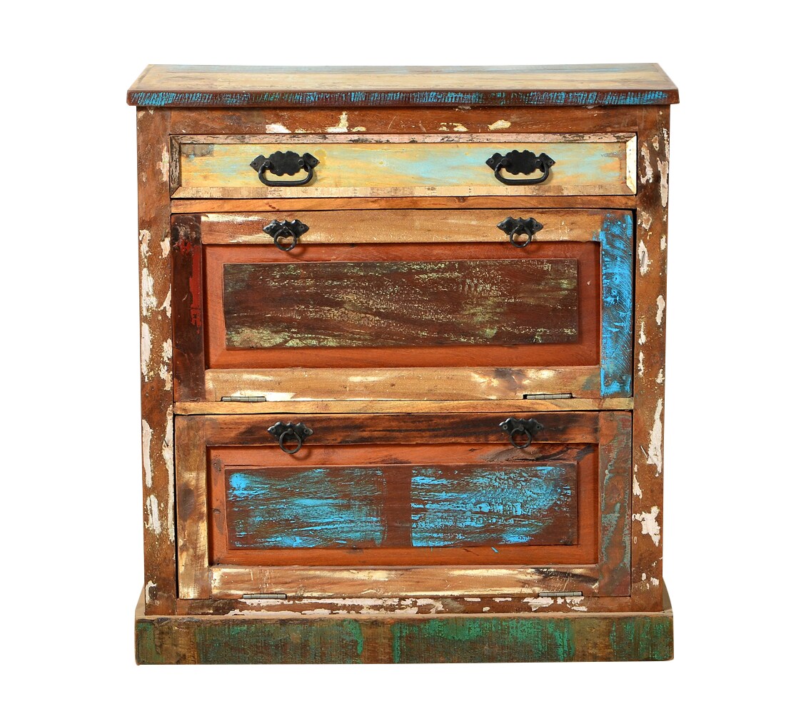 SIT Möbel Schuhschrank mit 3 Kippfächern | Altholz lackiert | bunt | B 65 x T 25 x H 110 cm | 09159-98 | Serie RIVERBOAT