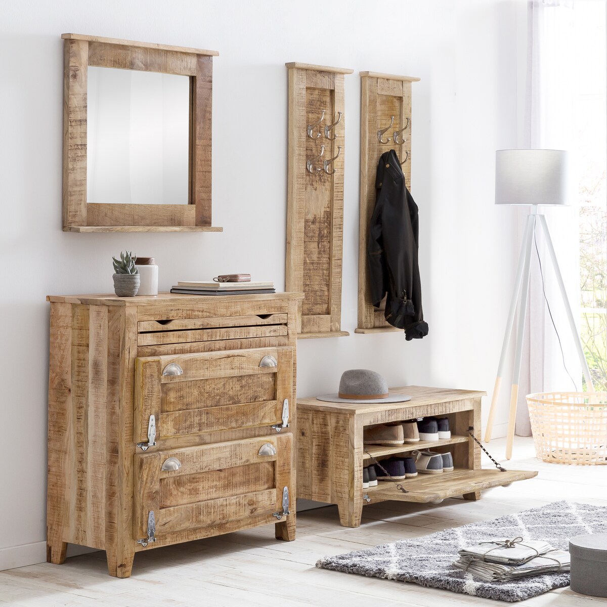 SIT Möbel Dielen-Set aus Mangoholz | 6-tlg. | natur lackiert | 2 Schuhschränke, 2 Garderobenpaneele, 1 Spiegel, 1 Schrank | B 100 x T 45 x H 180 ...