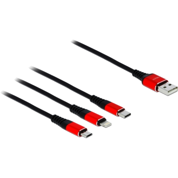 DeLOCK USB Ladekabel, USB-A Stecker > USB-C + Micro USB + Lightning Stecker