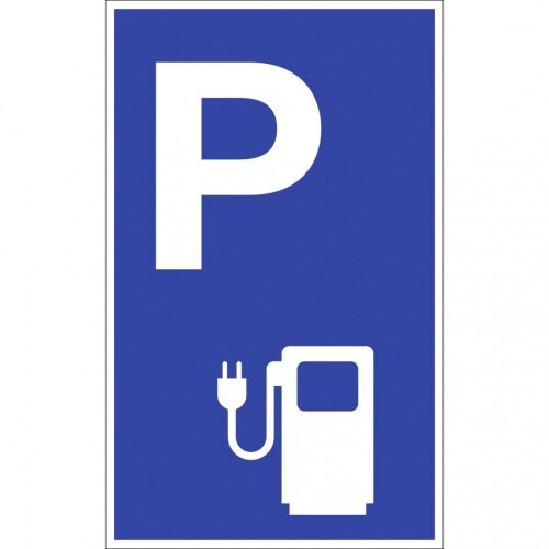 Dreifke Parkplatzschild-Ladestation für Elektrofahrzeuge, Symbol, Alu, blau, 400x650 mm
