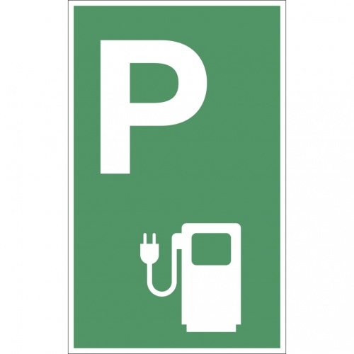 Dreifke Parkplatzschild-Ladestation für Elektrofahrzeuge, Symbol, Alu, grün, 250x400 mm