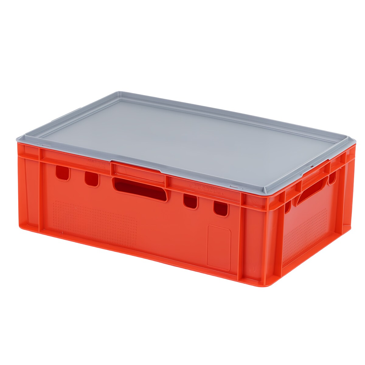 E2 Kiste (600 x 400 x 200mm) mit grauem Deckel Fleischkiste Lagerkiste Metzgerkiste in rot