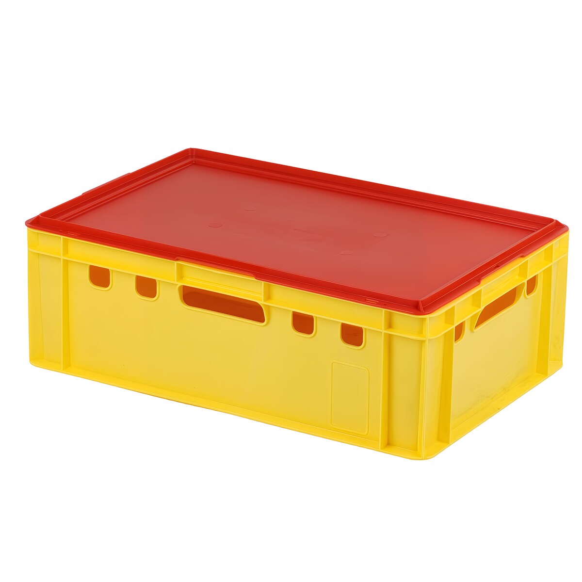 E2 Kiste (600 x 400 x 200mm) mit rotem Deckel Fleischkiste Lagerkiste Metzgerkiste in Gelb