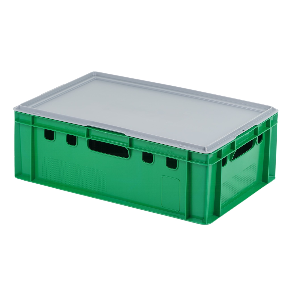 E2 Kiste (600 x 400 x 200mm) mit grauem Deckel Fleischkiste Lagerkiste Metzgerkiste in Grün
