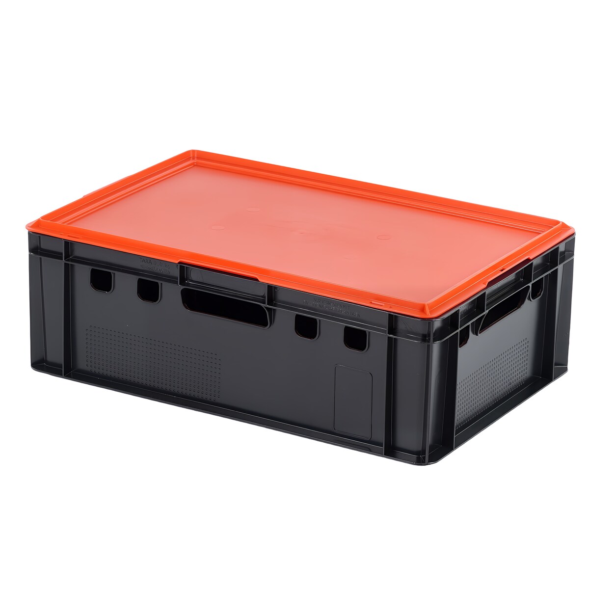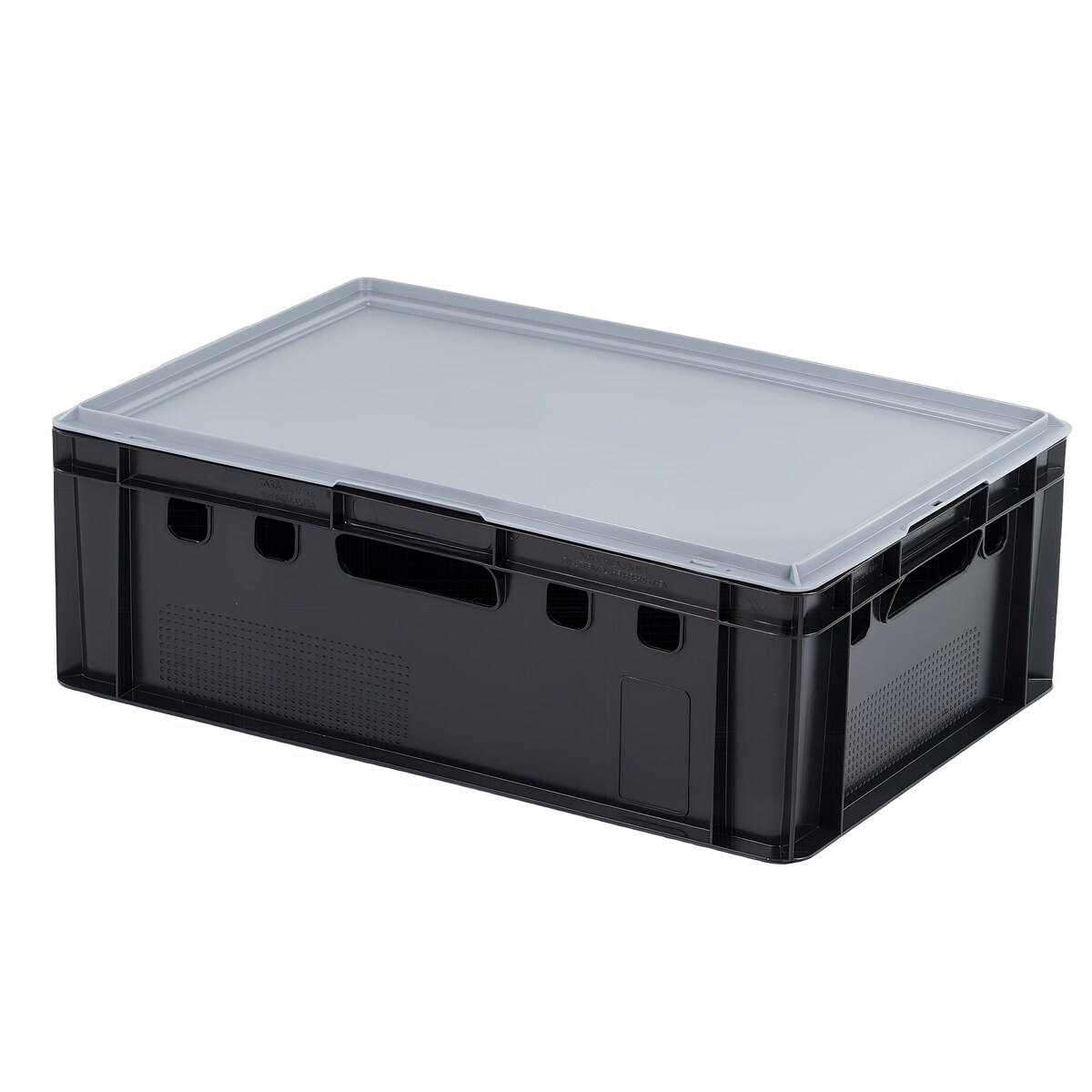 E2 Kiste (600 x 400 x 200mm) mit grauem Deckel Fleischkiste Lagerkiste Metzgerkiste in Schwarz