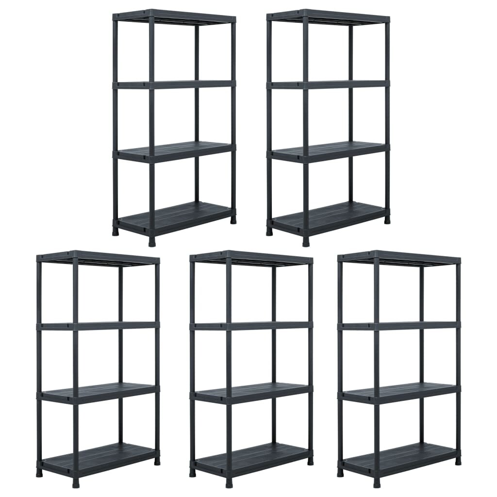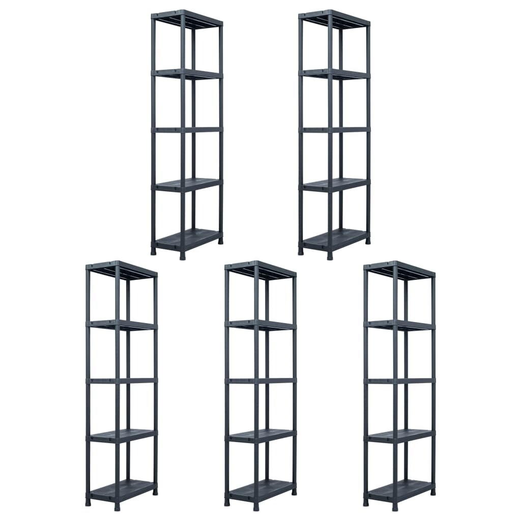 Lagerregale 5 Stk. Schwarz 125 kg 60 x 30 x 180 cm Kunststoff