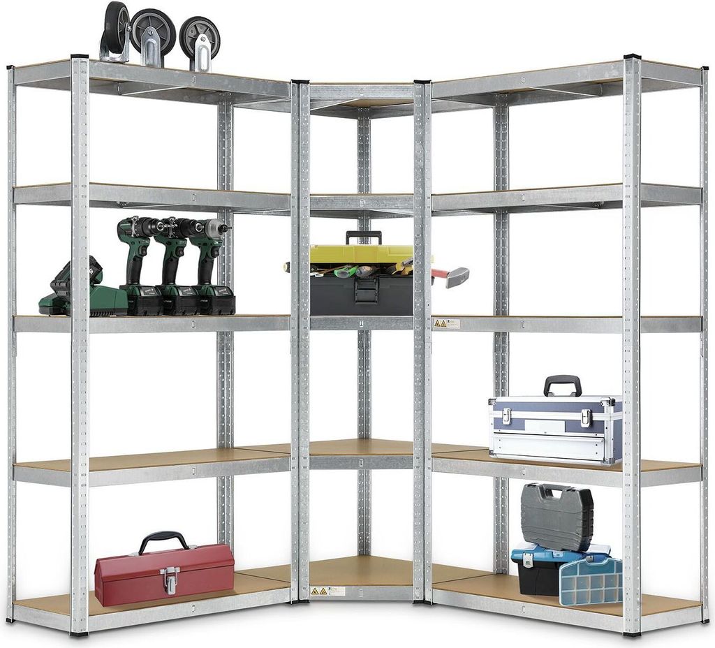 Juskys 3er Metall Regalsystem Basic - 1 Eckregal & 2 Lagerregale - 2625 kg - Silber