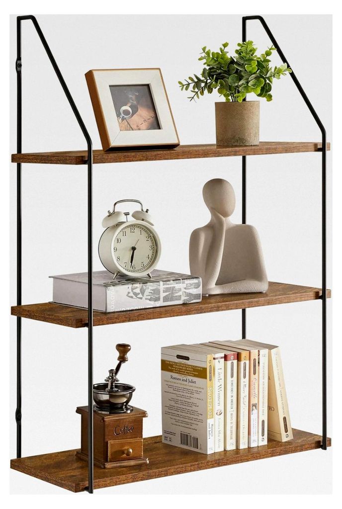 Schweberegal Standregal Wandregal mit 3 Etagen in elegantem Stil, Wandmontage, 60 x 20,5 x 80 cm, aus Holz und Metall, Lagerregale für Schlafzimme...