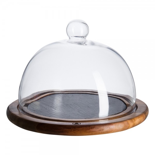 Laguiole Käseglocke aus Glas + Holzuntersatz Ø: 25 cm, H: 20 cm - Laguiole