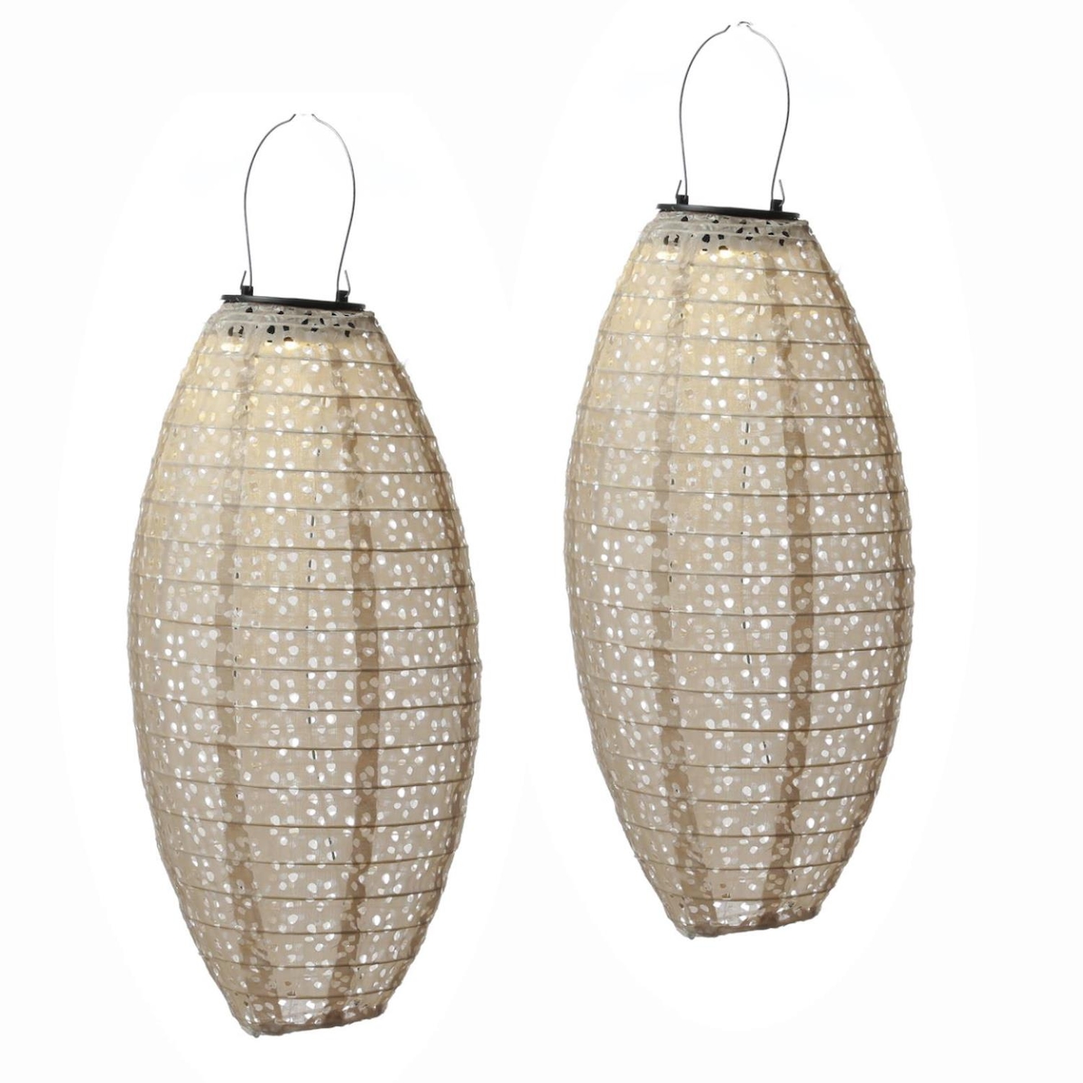MARELIDA LED Solar Lampions oval Blumenmuster beige 40cm Balkon Terrasse 2St
