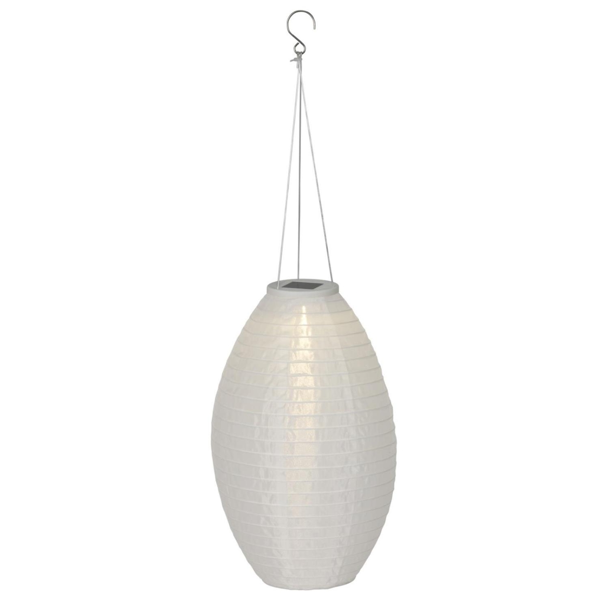 LED Solar Lampion oval - warmweiße LED - H: 33cm - D: 22cm - Lichtsensor - weiß