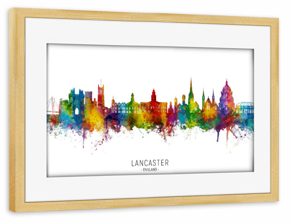 Poster mit Rahmen kiefer "Lancaster England Skyline txt" artboxONE - Städte
