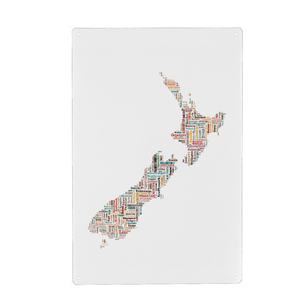 Holzbild "New Zealand Map Black" artboxONE - Typografie,Reise,Reise / Länder,Weltkarten,Kartografie - Karte,Landkarte,Landkarte,Neu seeland,Neuseeland