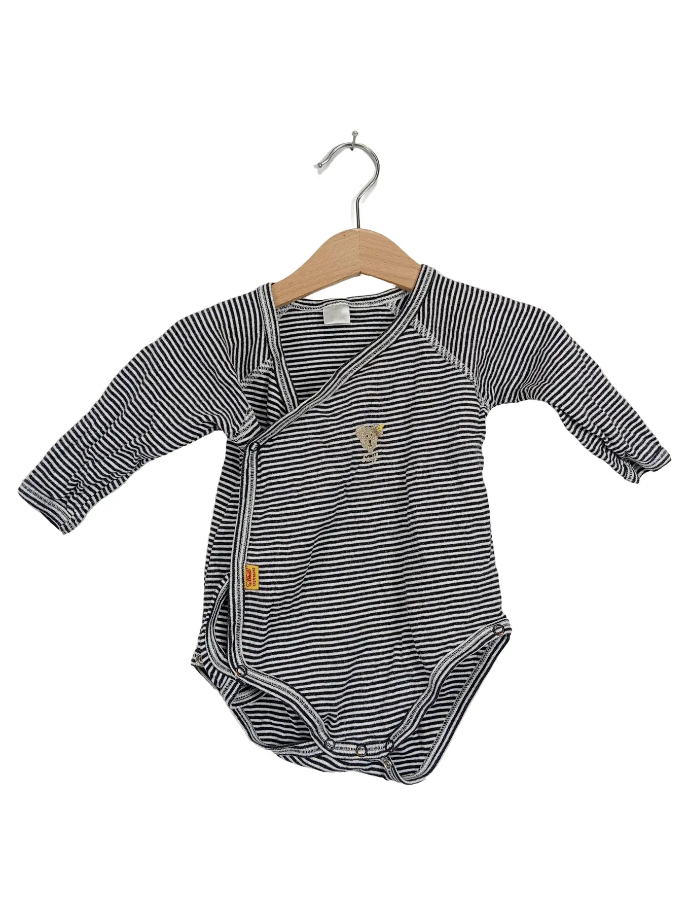 STEIFF Baby Body Langarm Gr. 74 Schwarz Weiß Gestreift Wickelbody