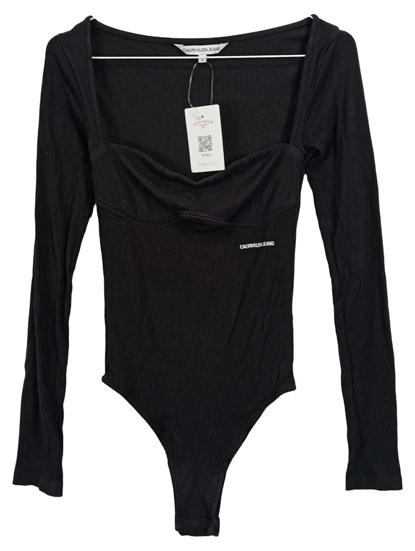 CALVIN KLEIN JEANS Damen Body Langarm Schwarz Rippstrick Gr. 34/XS