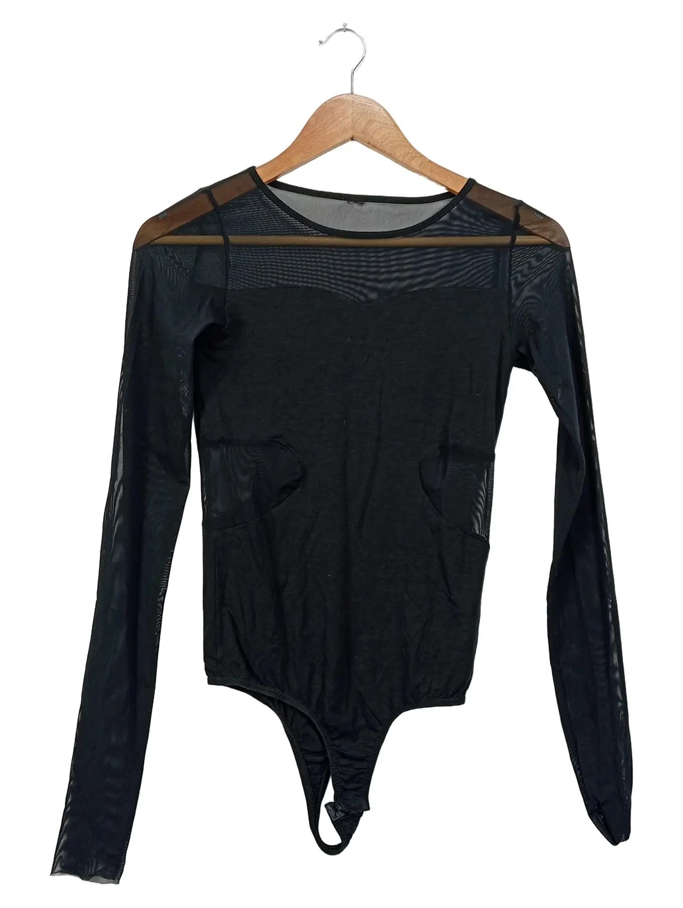 Transparenter Langarm-Body mit Kreuz-Design – Schwarz
