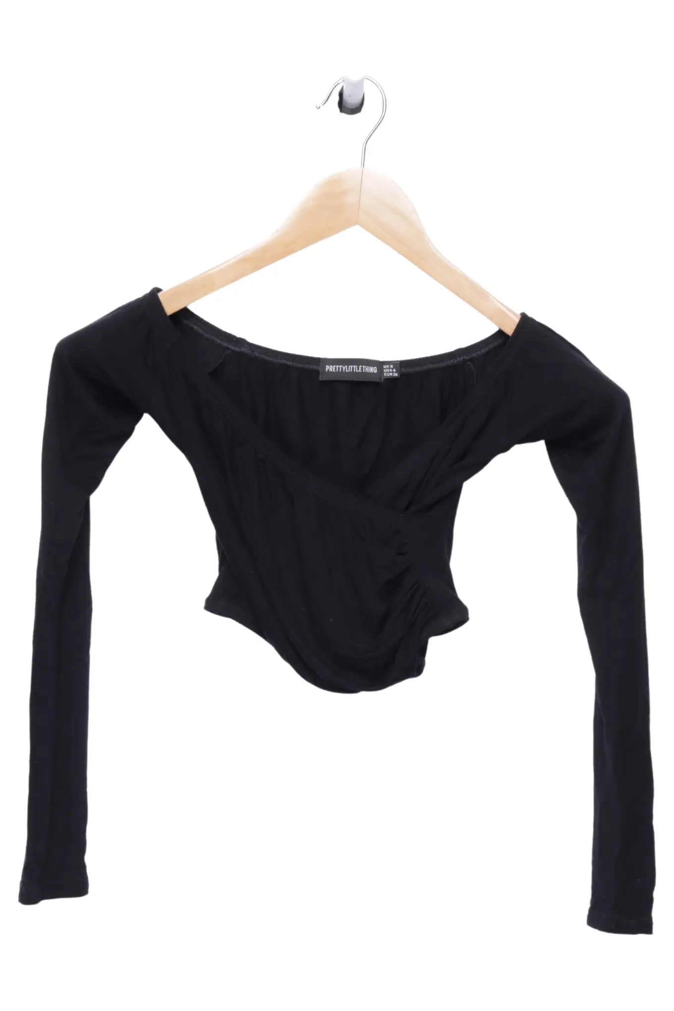 MARKENLOS Damen Langarm Body Schwarz Cropped Off-Shoulder Gr. S/36 Stretch