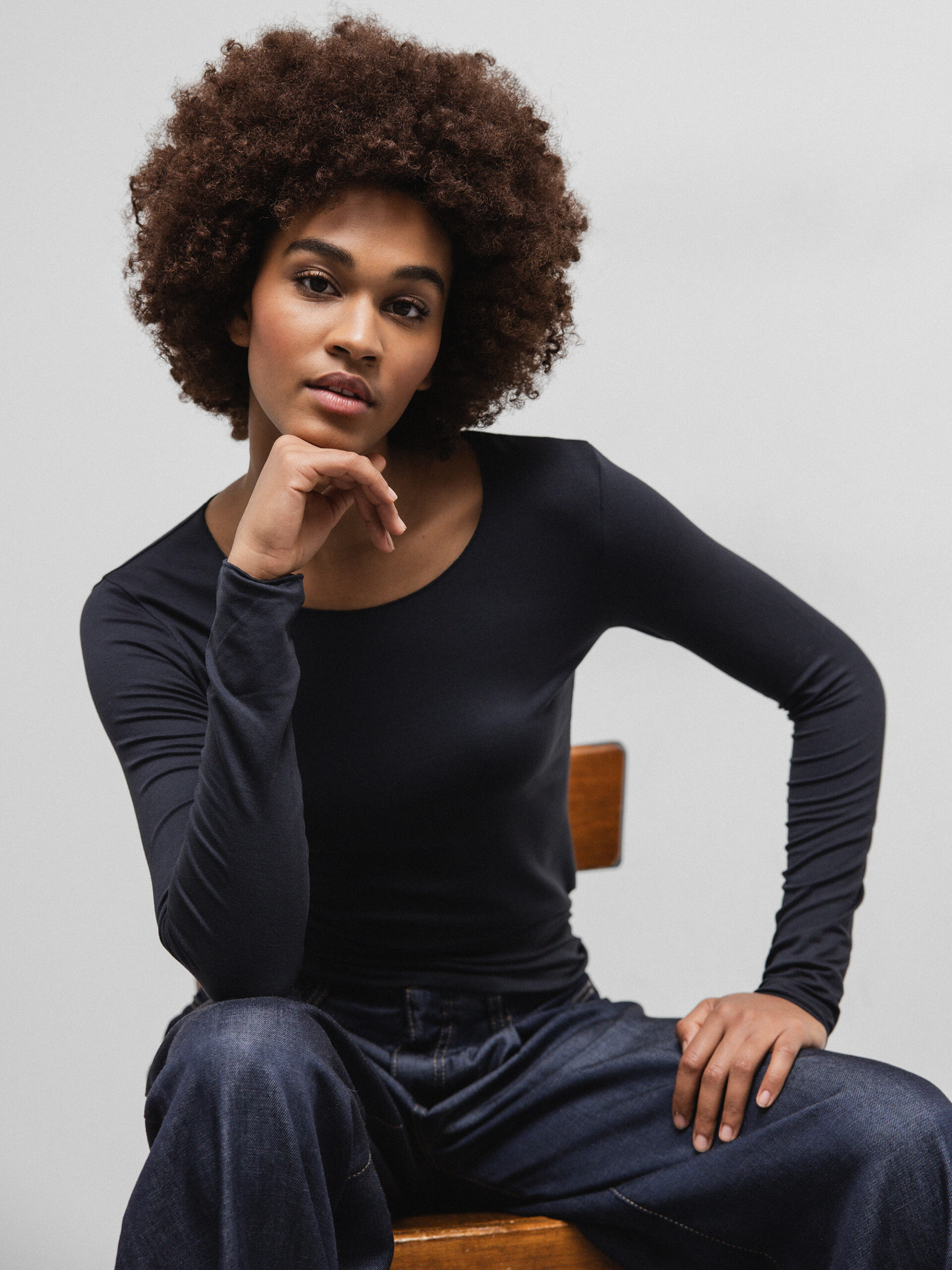 TARA-M Tara M Damen Langarmshirt Basic Schwarz Gr. 38/M