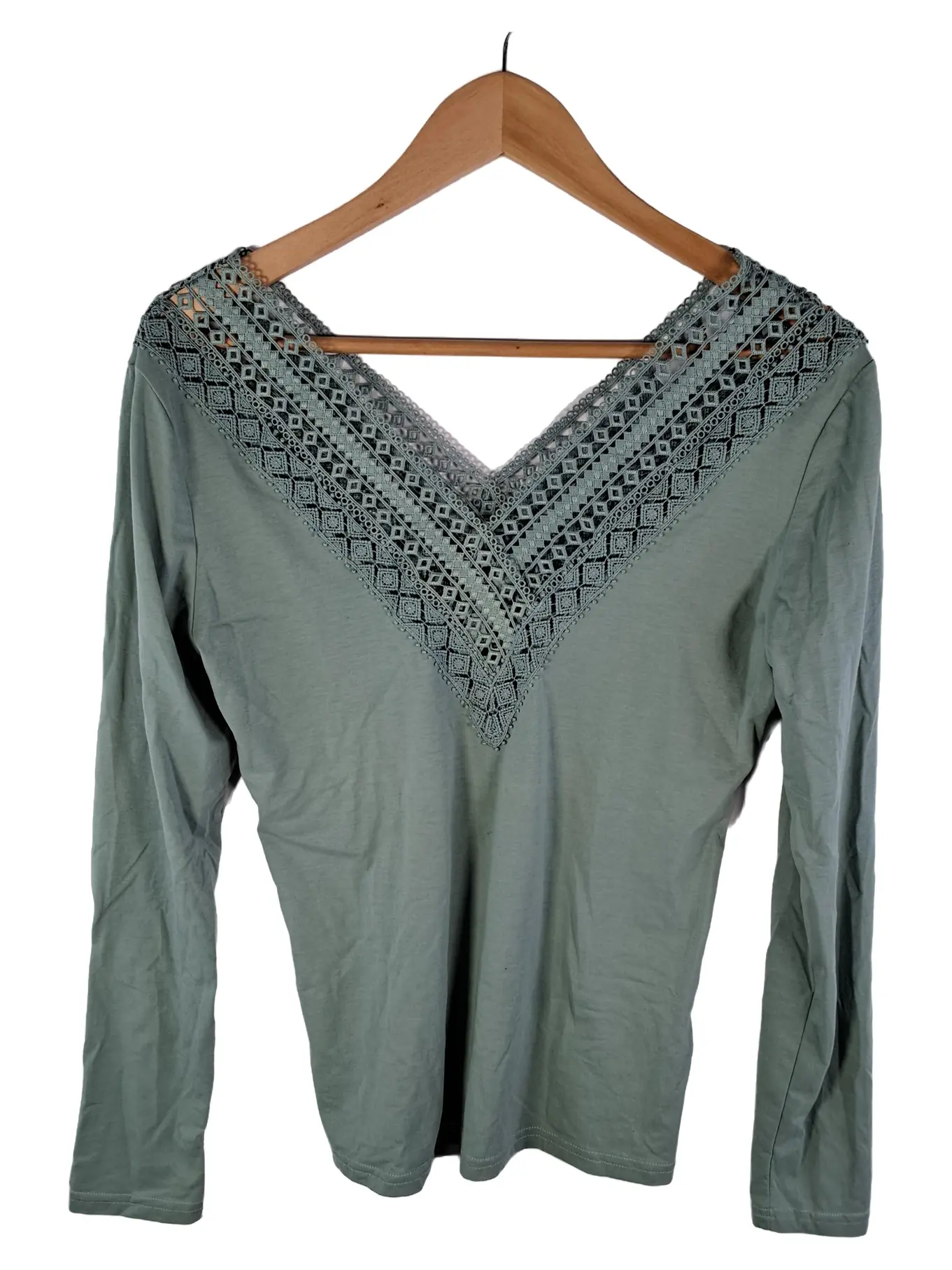 M&G MONOGRAM Damen Langarmshirt Spitze Gr. S Salbeigrün Freizeit