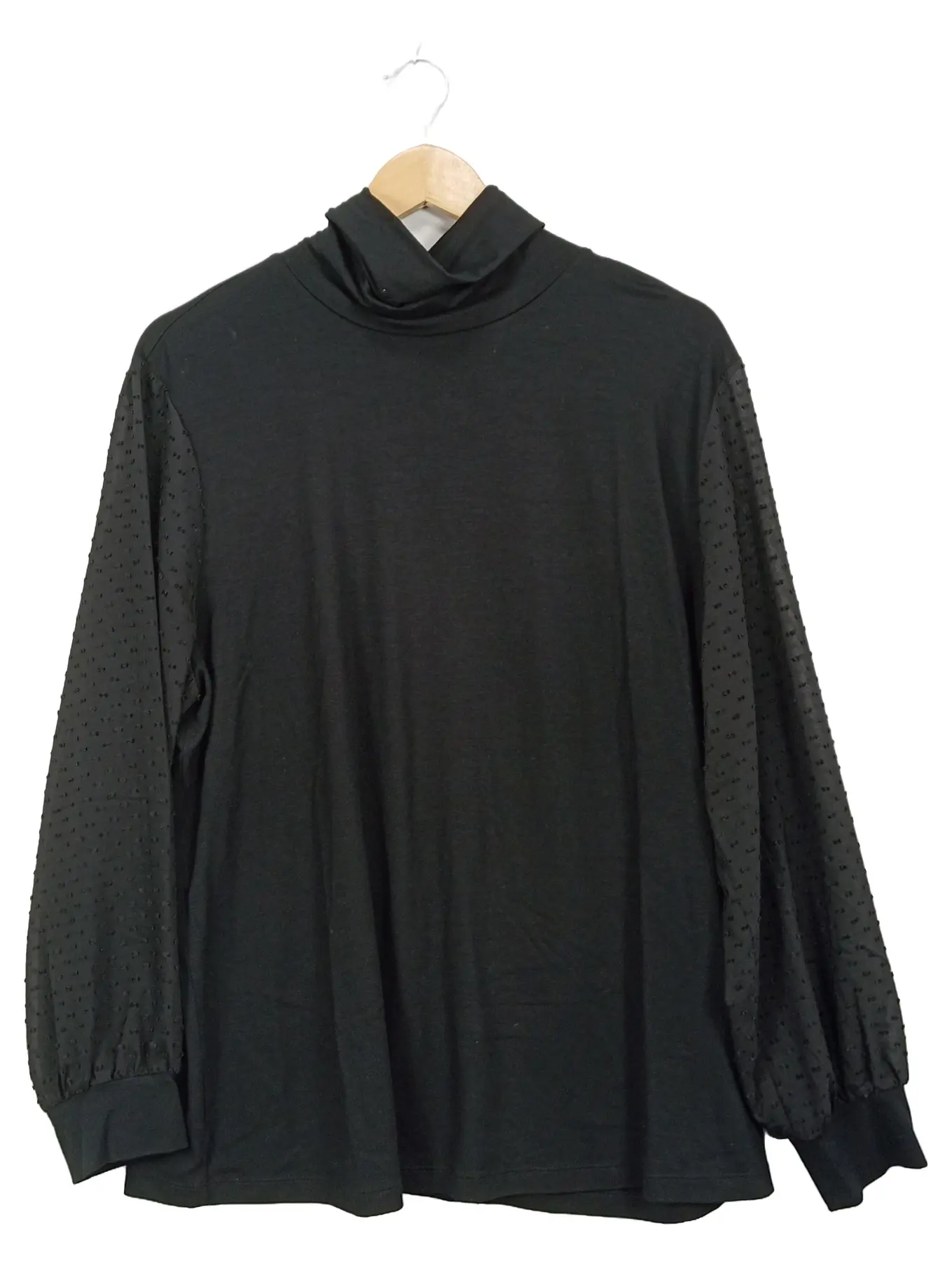 PFEFFINGER Damen Langarmshirt Rollkragen Lochmuster Gr. 48 Schwarz