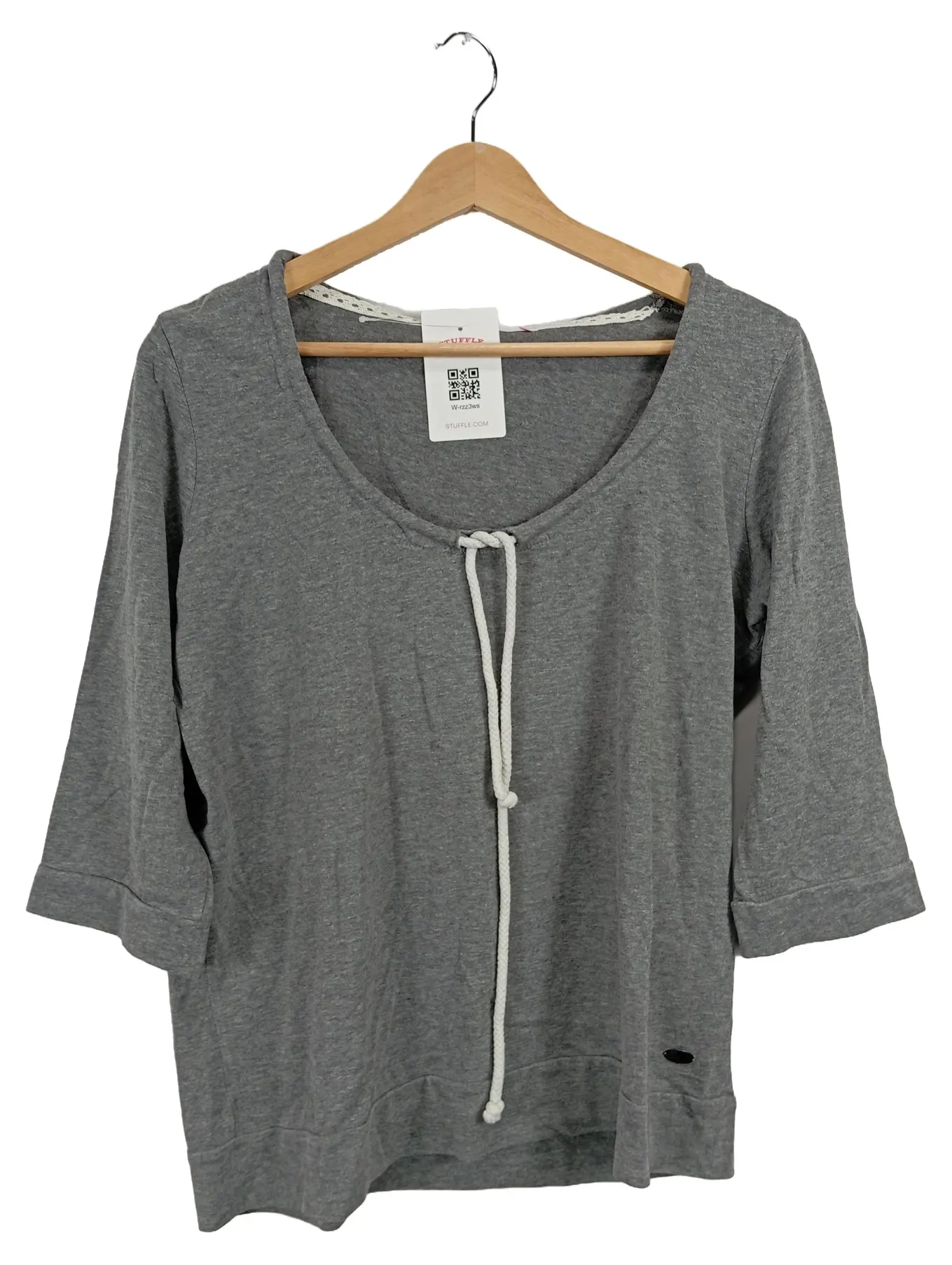 ONLY Damen Langarmshirt Grau 36/S 3/4 Arm Schleife Baumwolle Casual Gr. 36 Damen