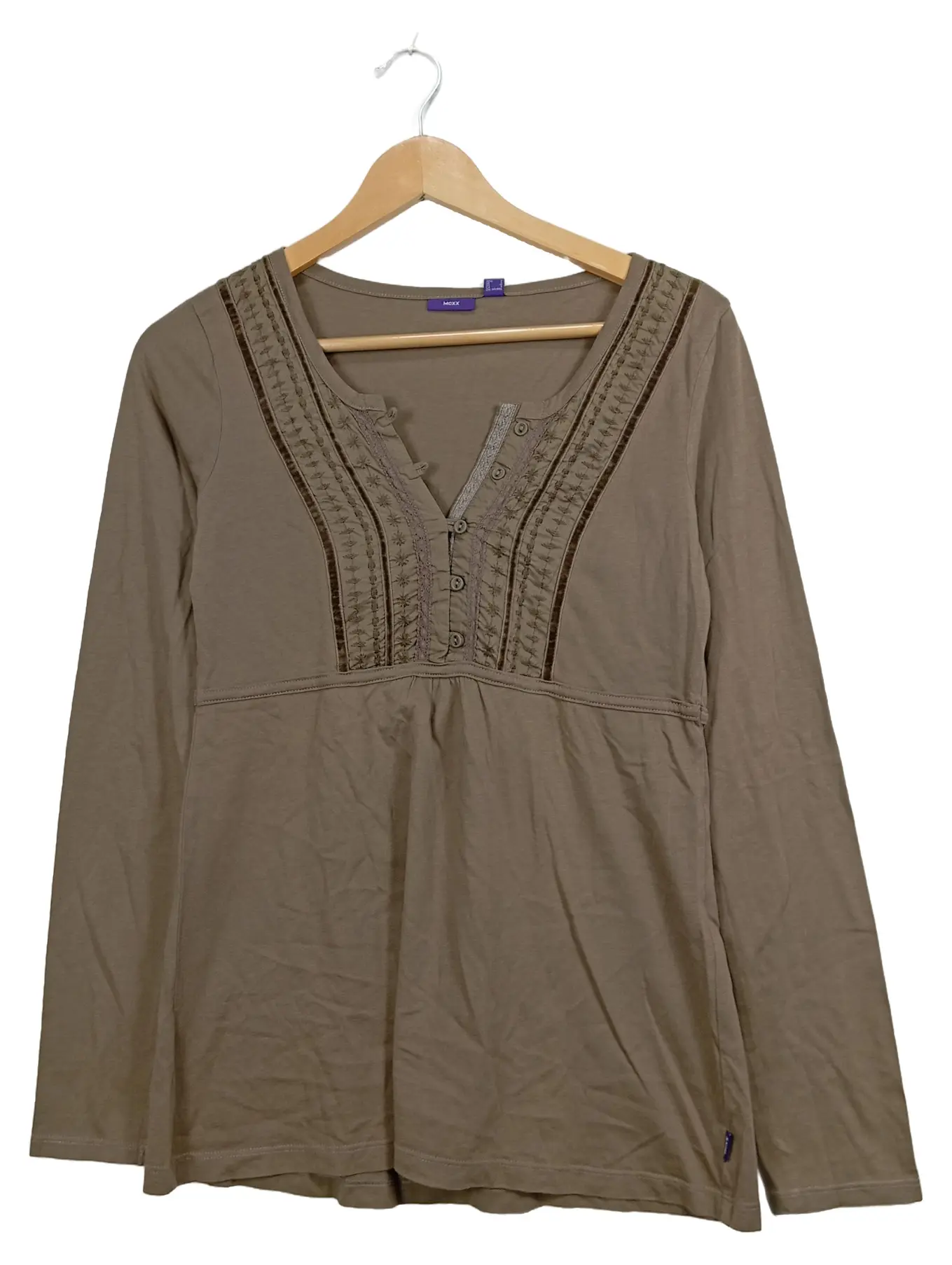MEXX Damen Langarmshirt Baumwolle Gr. 36/S Braun Casual Stickerei