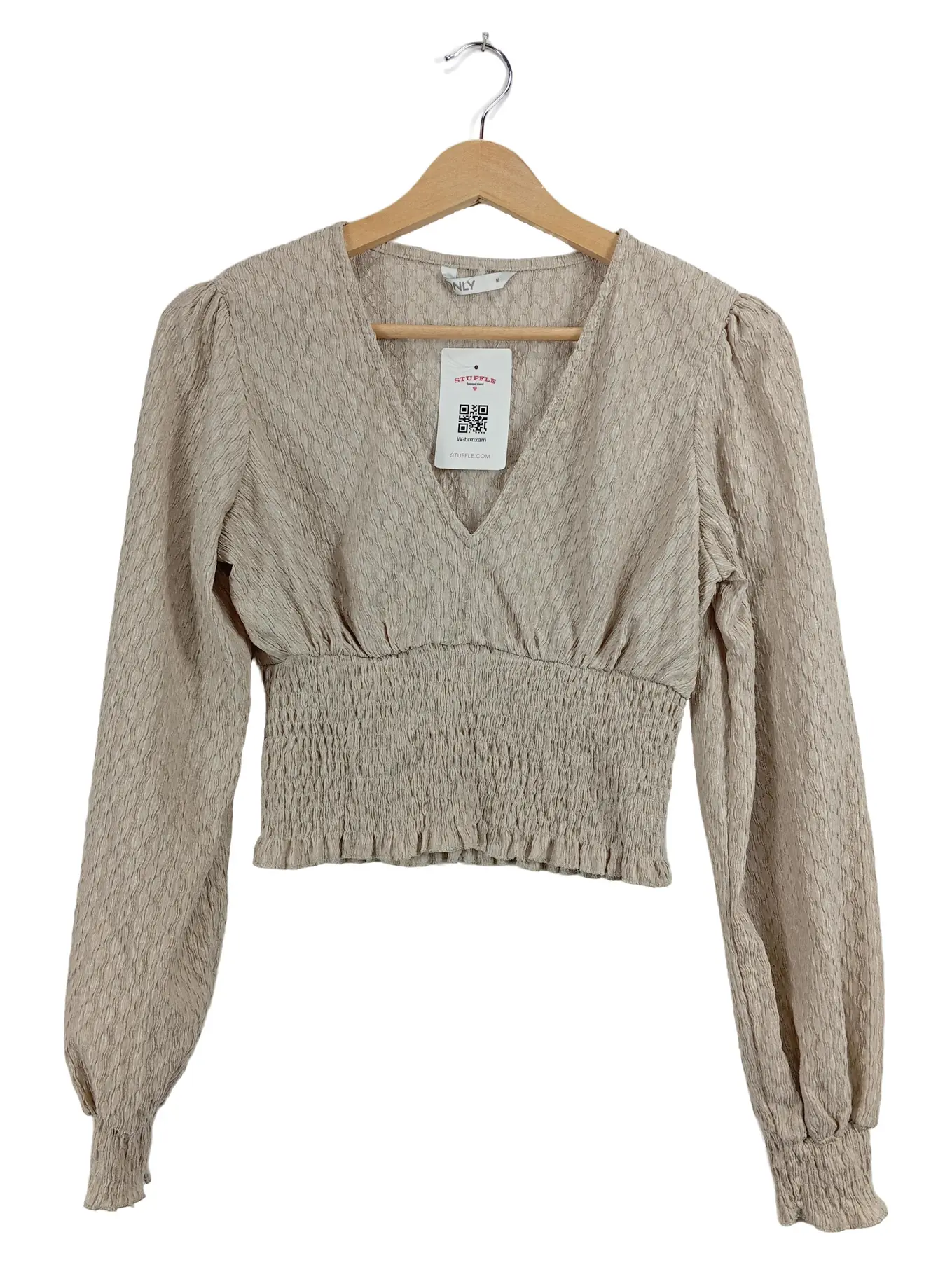ONLY Damen Langarmshirt Strukturmuster Beige Gr. M Raffung Casual