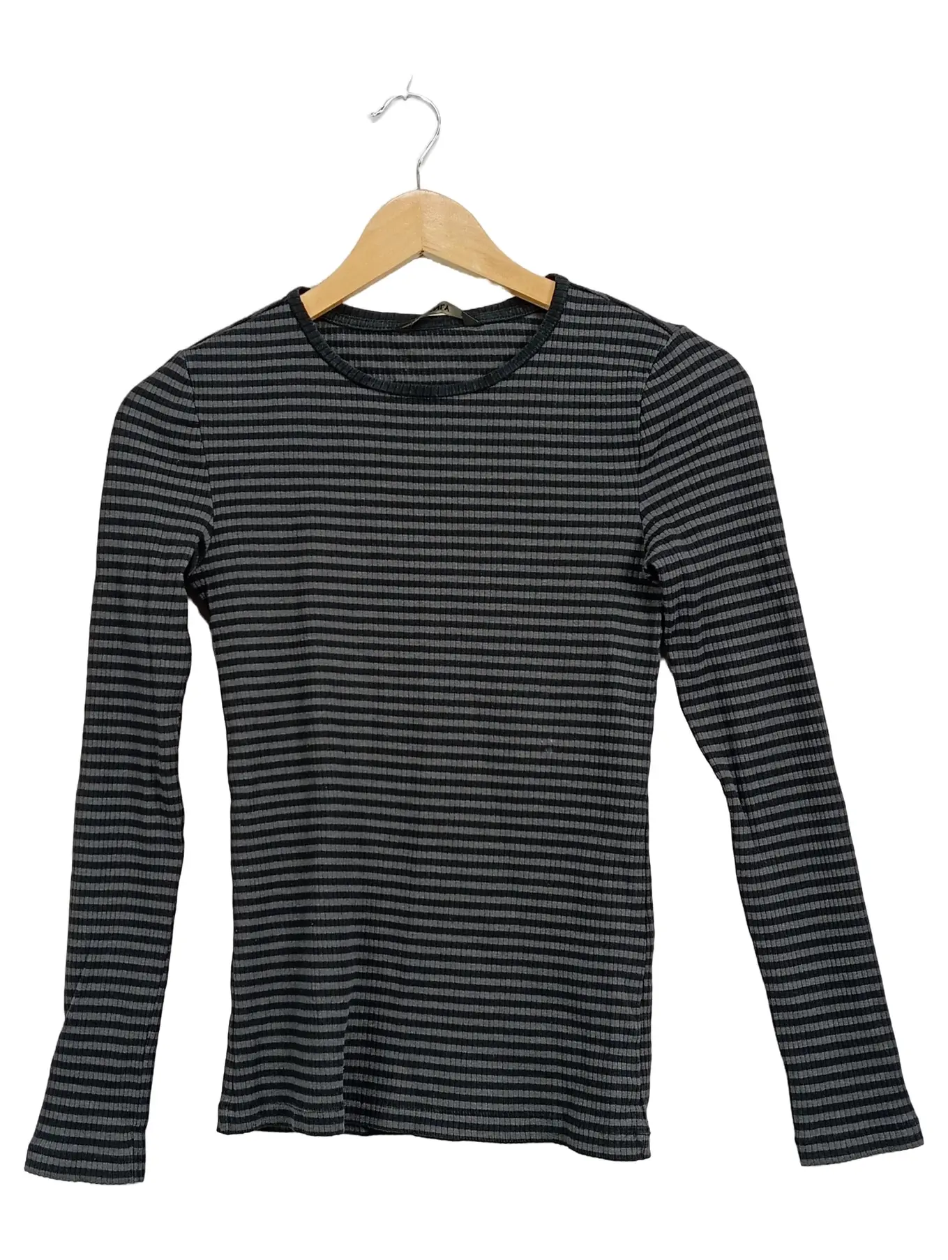 ONLY Langarmshirt Damen Gr. S gestreift schwarz grau Rippstrick Basic