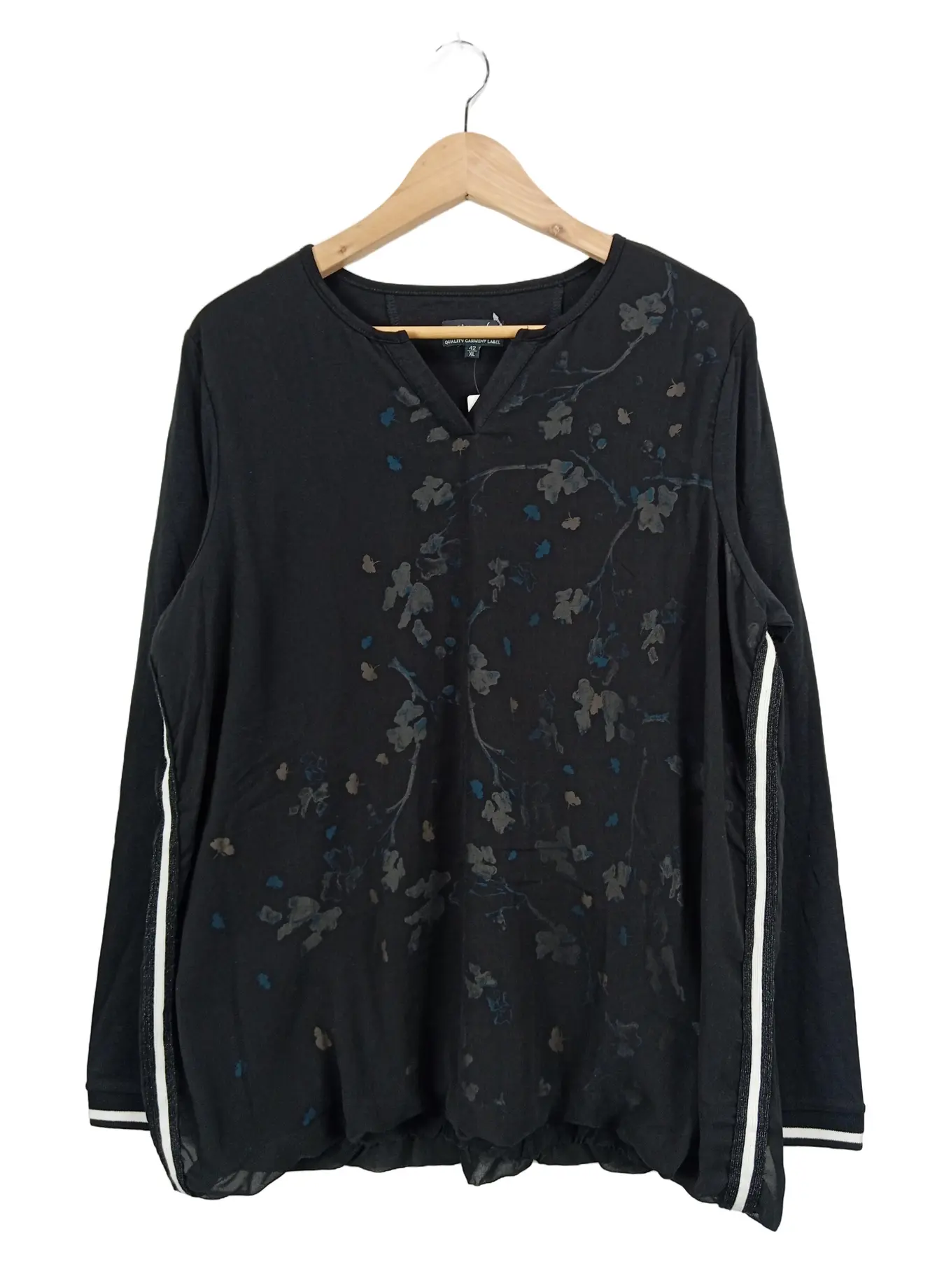 S'QUESTO Damen Langarmshirt Gr. 42 Schwarz Blumenmuster Casual