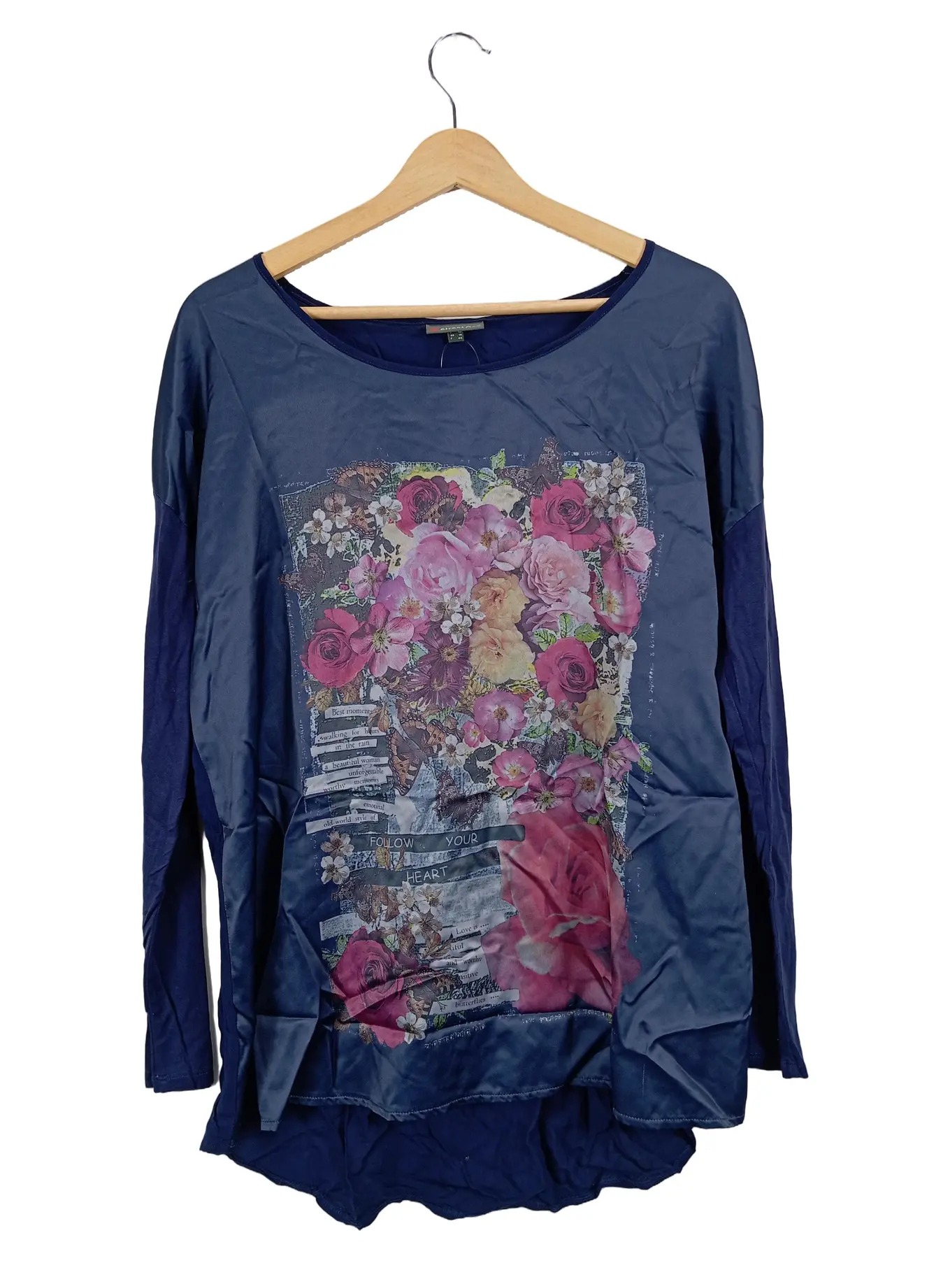 STREET ONE Damen Langarmshirt Gr. 42/XL Blau mit Blumenmuster