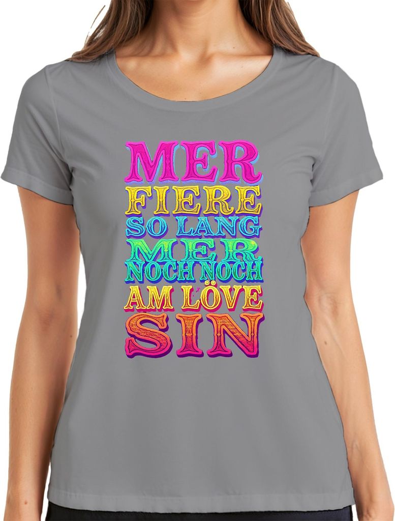 Kölsch Karneval Karnevalsjeck Mer fiere so lang Party Geschenk Damen T-Shirt, Grau, M