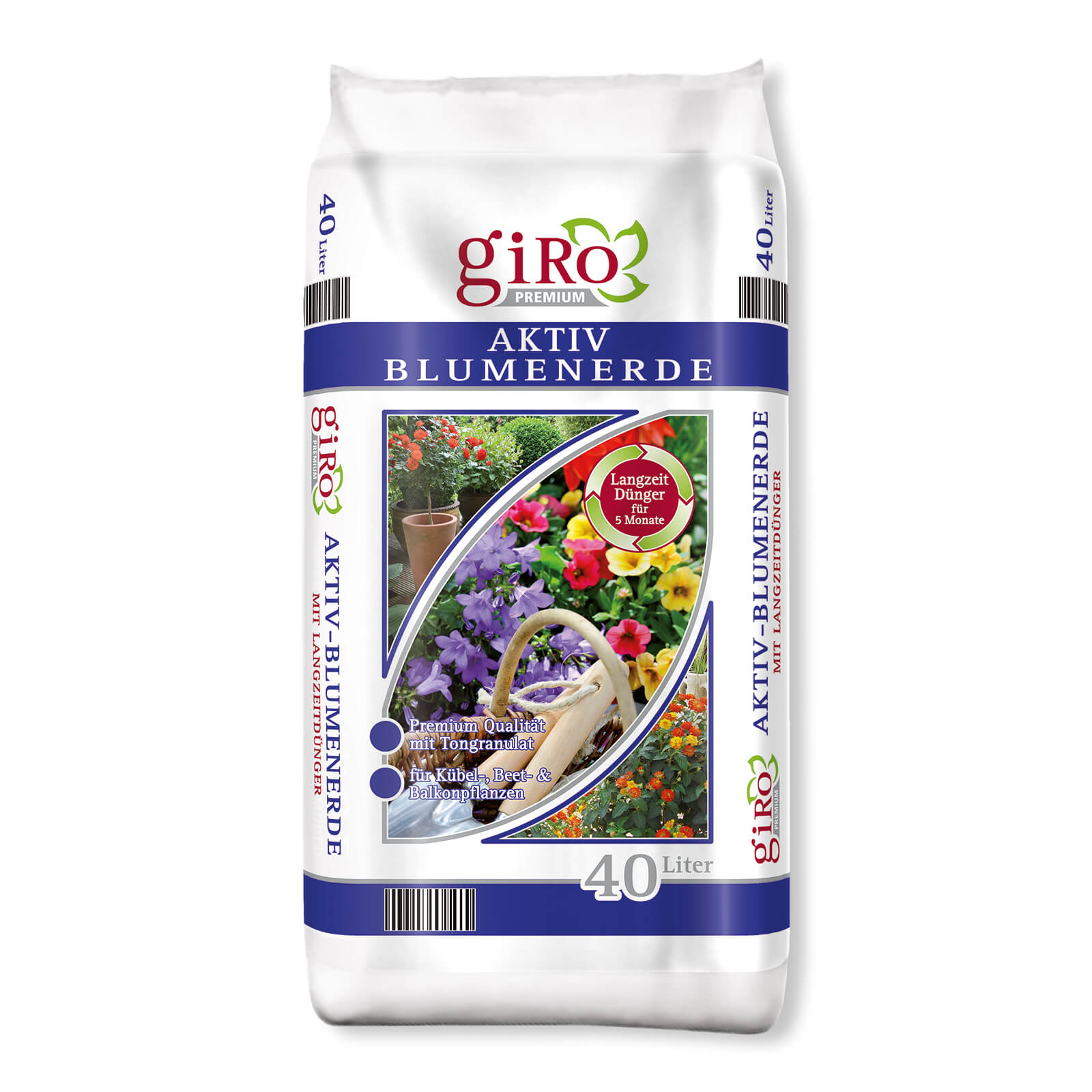GiRo Premium Aktiverde 40 L mit Langzeitdünger, Pflanzerde, Pflanzsubstrat, nährstoffreich, für Gemüse, Kräuter, Blumen, Balkon, Garten