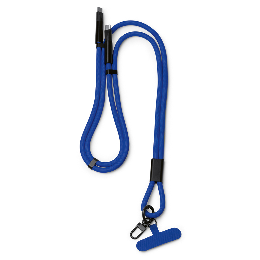 Werbeartikel Smartphone Lanyard Blau aus Nylon, Typ USB-C