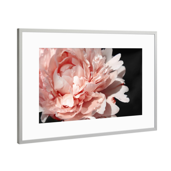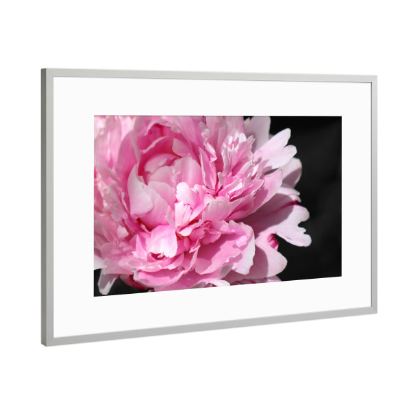Poster mit Rahmen Silber "Pink large peony" artboxONE - Floral - Pink,Peony,Feminine,Black,Floral,Botanical,Flower,Blume,Closeup,Nahaufnahme
