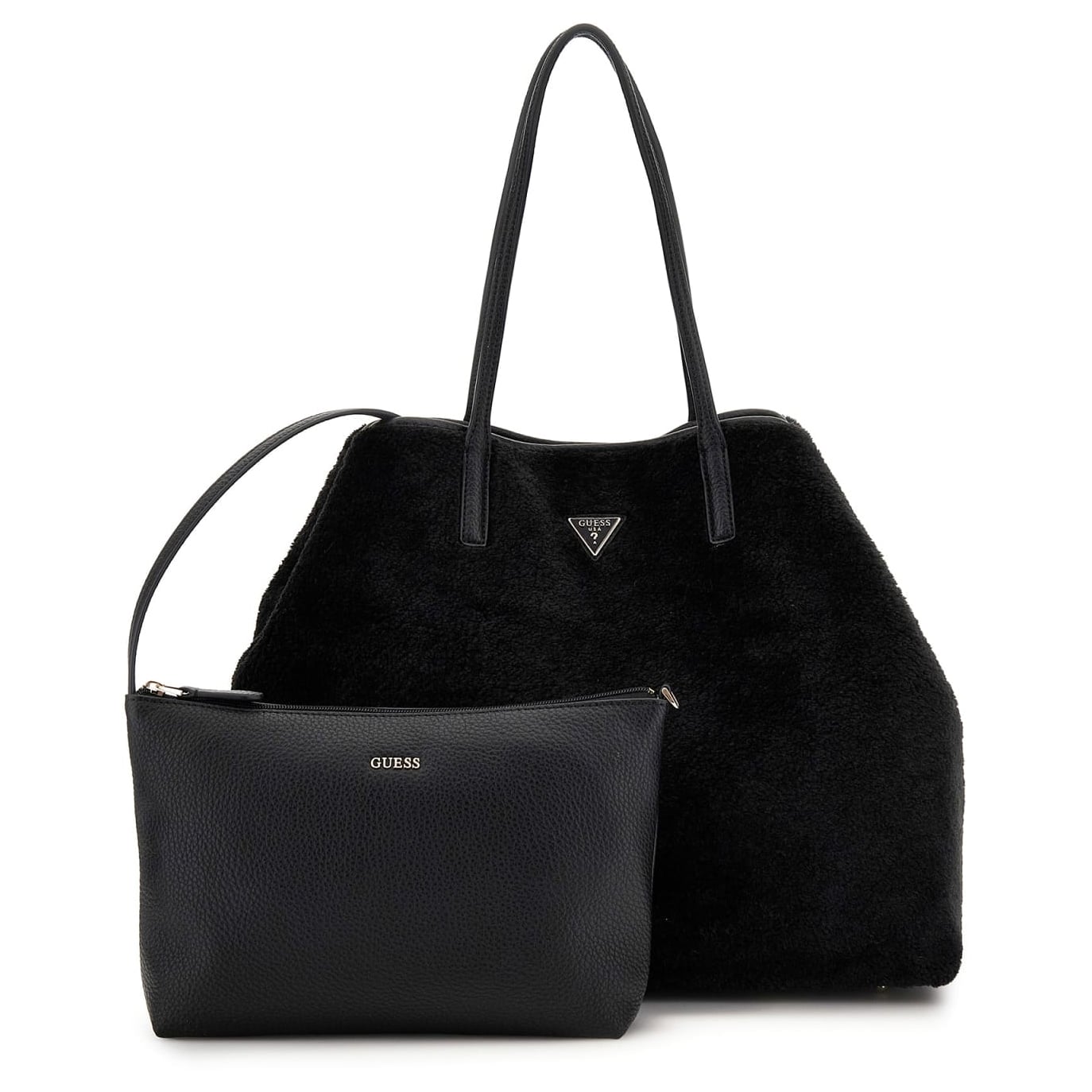 Guess Shopper Victtoria Large 2 in 1 Tote black, Damen Handtasche schwarz aus Kunstleder