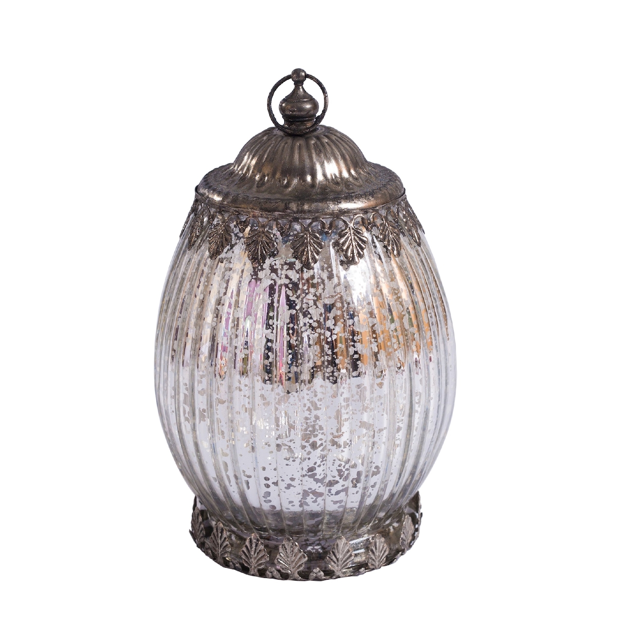 H&D Manufaktur Jinfa Glas Laterne in Silber mit LED Beleuchtung Ø 10,5 cm, Höhe 18cm,