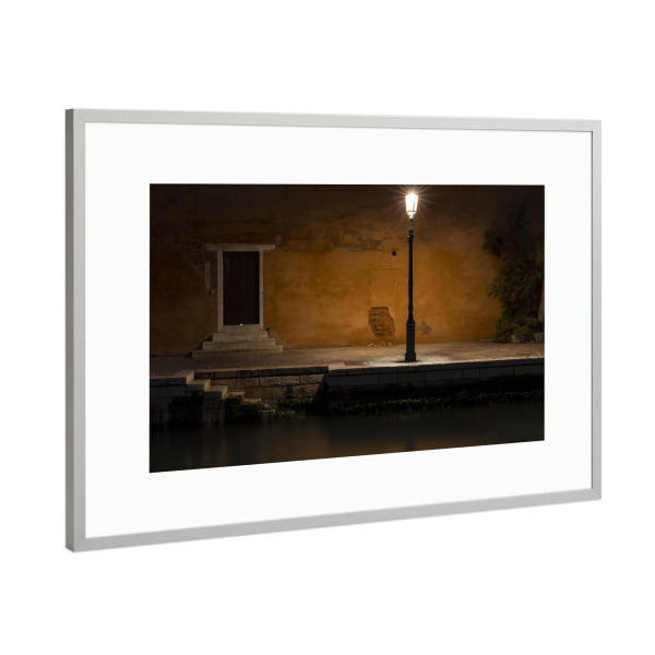 Poster mit Rahmen Silber "Nachts in den Gassen von Venedig" artboxONE - Architektur - Venedig,Gassen,Laterne,Italien,Tür