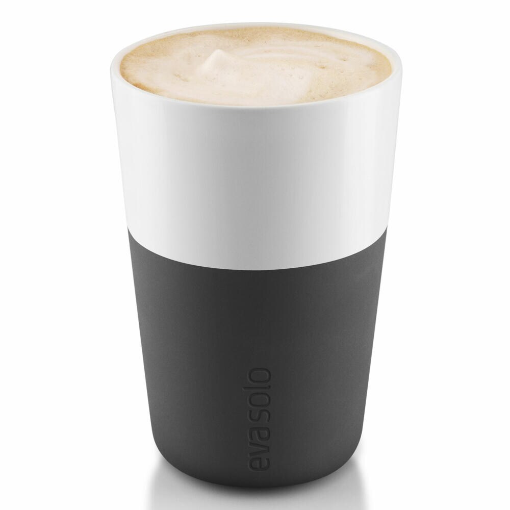 Eva Solo Caffé Latte-Becher, Milchkaffee, Kaffee, Caffétasse, Porzellan/Silikon, Schwarz, 360 ml, 2er-Set, 501003