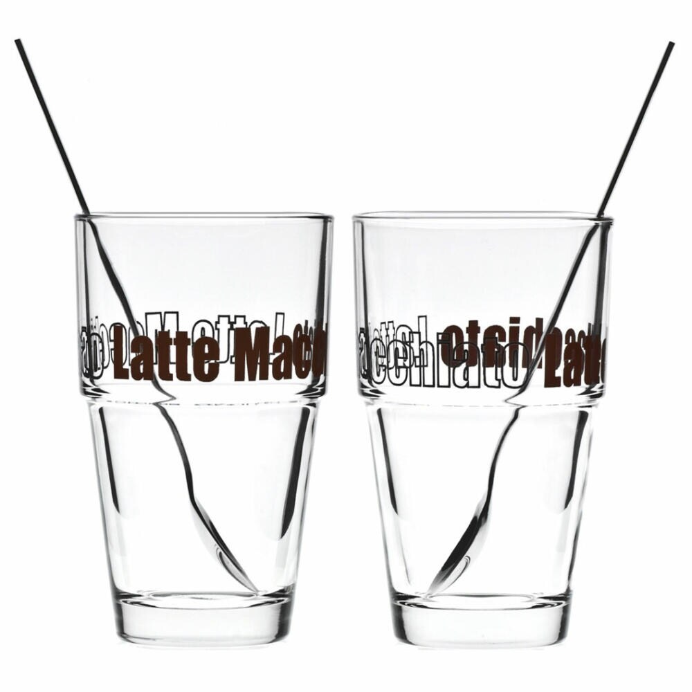 Latte-Macchiato Set, Kaffee-Gläser mit Löffel, spülmaschinengeeignete Glas-Becher, 4er Set, 410 ml